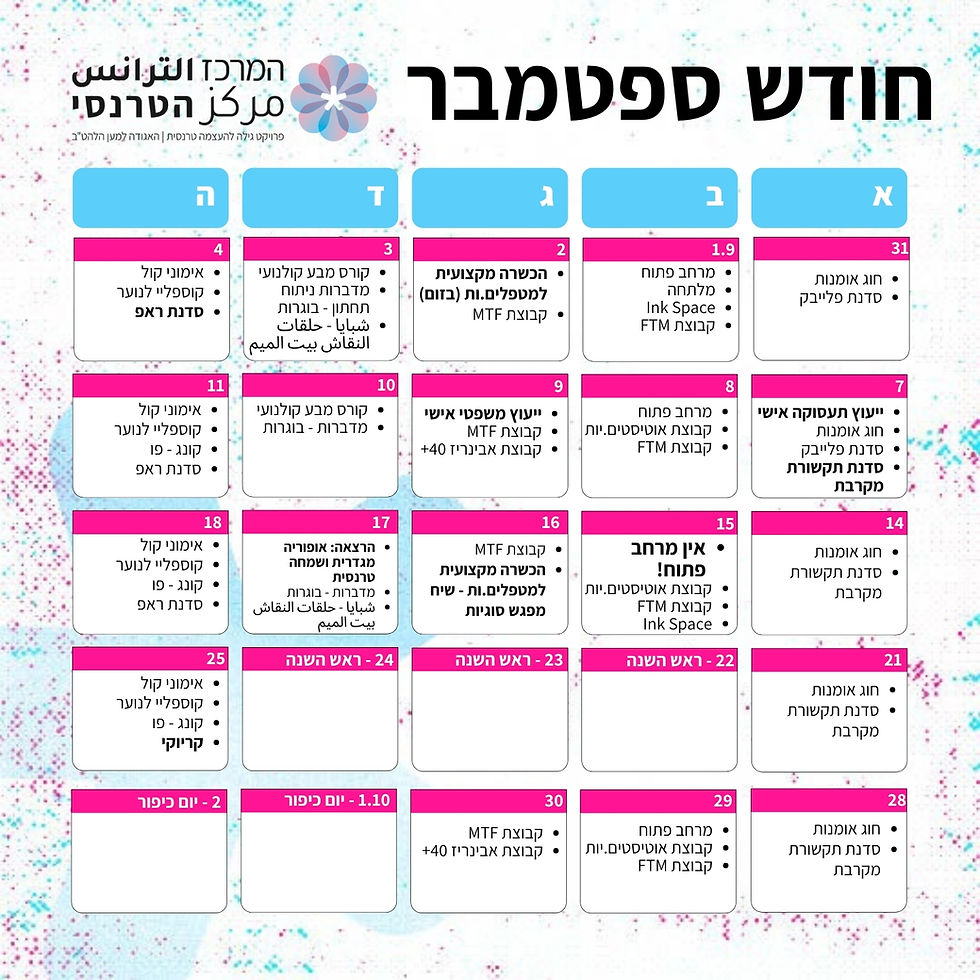 המרכז הטרנסי הוא המרכז הקהילתי הראשון מסוגו בארץ המוקדש כולו לקהילה שלנו על כל גווניה: בכל גיל, מכל רקע, מתחילים.ות וותיקות.ים כאחד, כולל מעגלי הקירבה, התמיכה והסיוע של כולנו. בין אם את.ה חבר.ה בקהילה, קרוב.ת משפחה, חבר.ה, או איש/אשת מקצוע שרוצה לדעת יותר, בין אם יש לך רק שאלה קטנה או רצון להיות מעורב.ת - המרכז הזה הוא שלך ובשבילך!